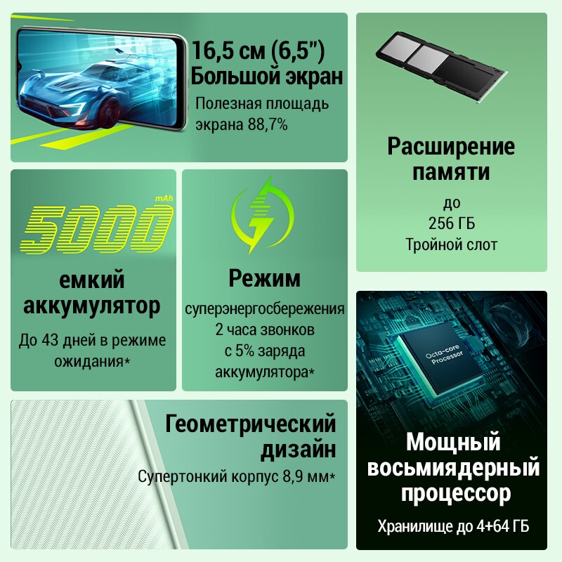 Смартфон realme narzo 50i,4+64ГБ,Распознавание лица,емкий аккумулятор 5000мАч,Быстрая зарядка,российская гарантия,Molnia