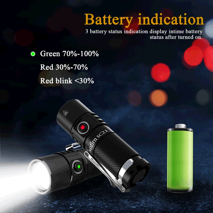 Sofirn-SC21 Mini 16340 LED Flashlight USB C 1000lm Rechargeable EDC Torch with Magnet Tail Power Indicator