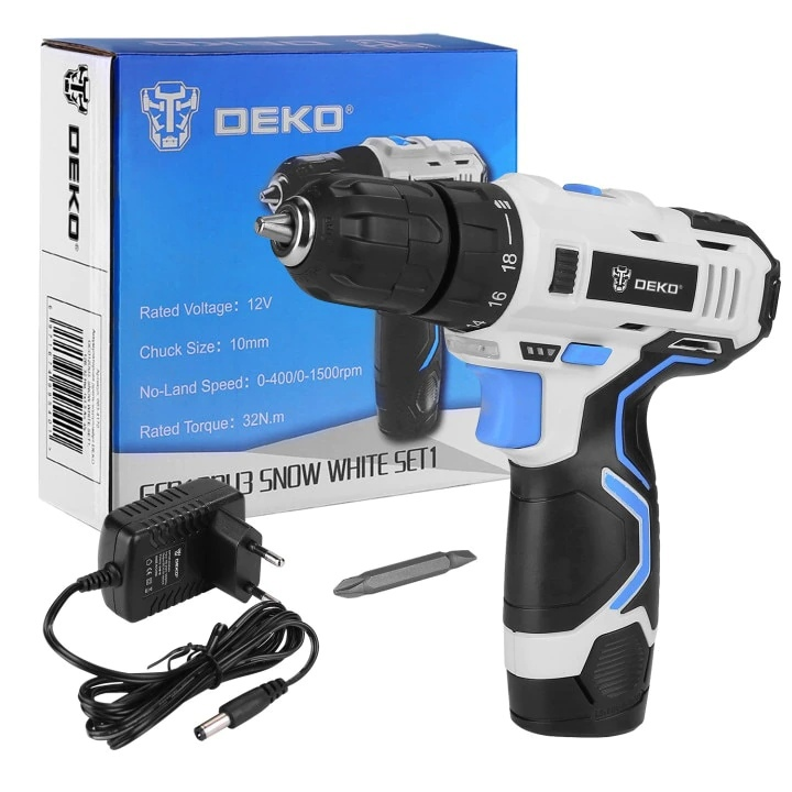 Cordless drill-screwdriver Deko es12du3 Snow White SET1 12 V 32 nm 1 x 5ah power tools for home drills construction repair Electric Screwdriver Drill Handheld Lithium Battery Charging