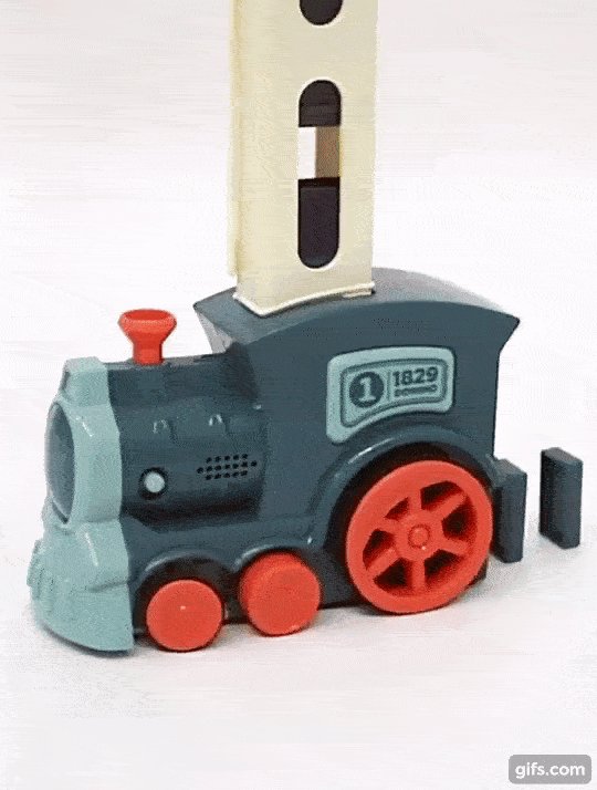 A train placing dominoes