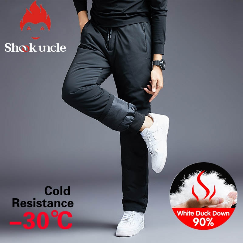 Winter Warm Men Down Pants White Duck Down Outdoor Sports Camping Straight Pants Hiking Pants Thicken Thermal Down Trousers 9288
