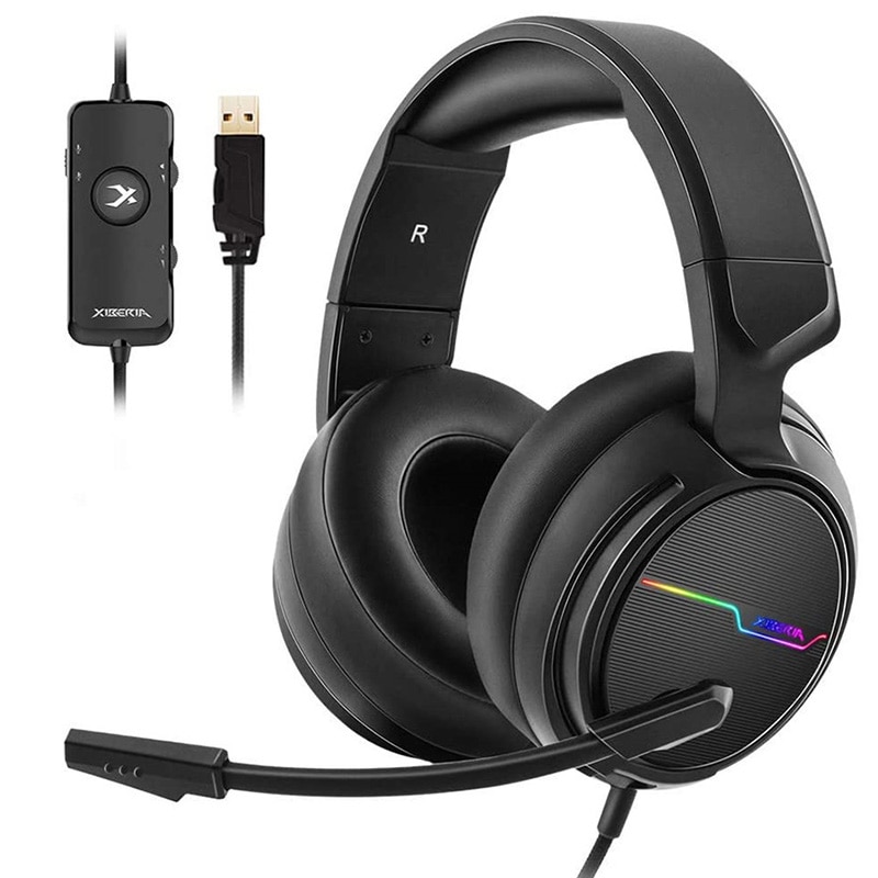 UNITOP Xiberia V20 Gaming Headphones USB 7.1 Headset for PC Game Computer Bass Stereo Earphones with Microphone LED Light