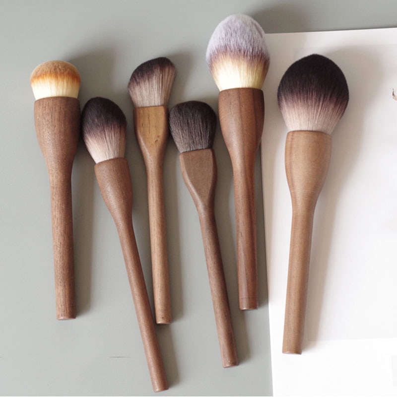 1Pcs European Vintage Wood Handle Makeup Brush High Quality Loose Powder Blush Foundation Brush Super Soft Theatre Makeup