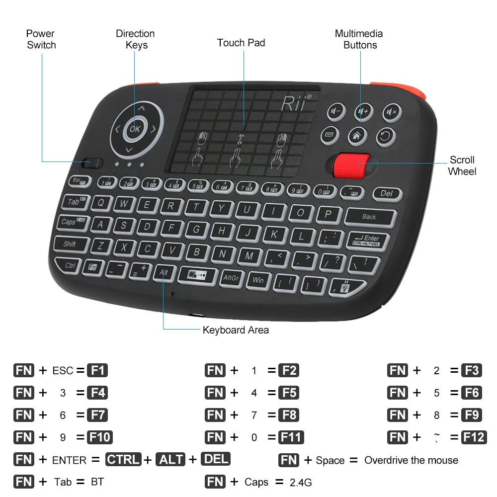 Rii i4 Mini Bluetooth Wireless Keyboard With Touchpad 2.4GHz Backlit Mouse Remote Control For Windows Android TV Box Smart TV