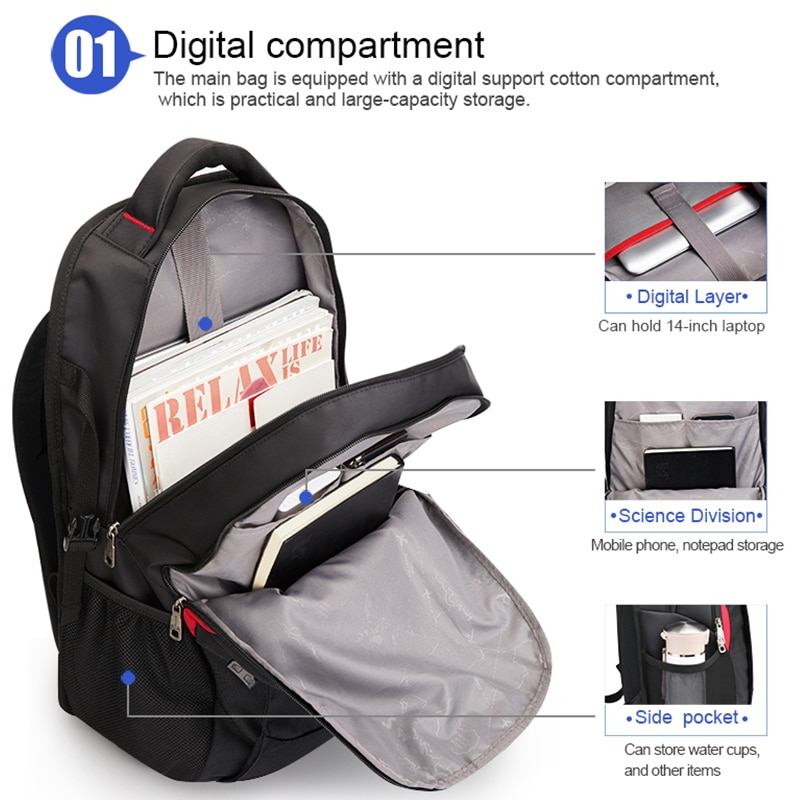 OIWAS Laptop Backpacks 14 Inch School Bags Waterproof Nylon 29L Casual Shoulder Bagpack Travel Teenage Men's Backpack Mochila