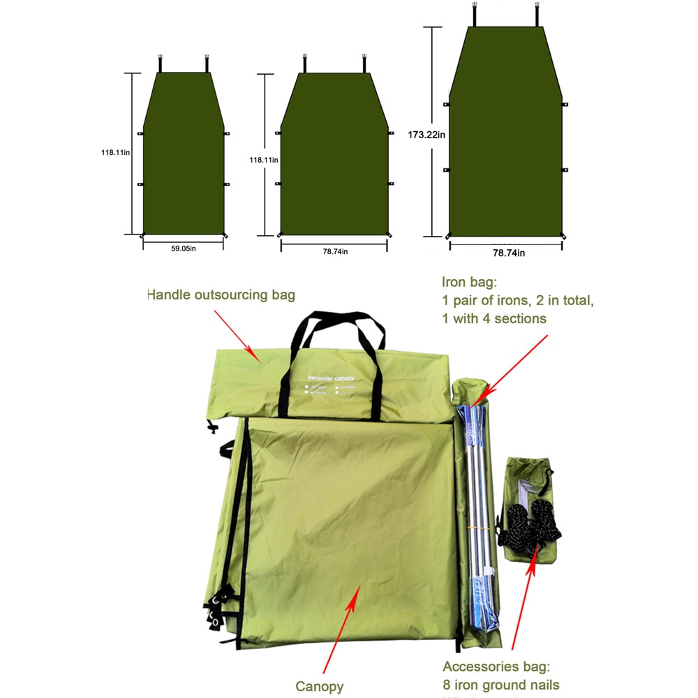 150/200/440CM Car Camping Shelter Shade Portable Roof Top Tent Awning Waterproof UV SUV Rooftop Rain Canopy Car Accessories