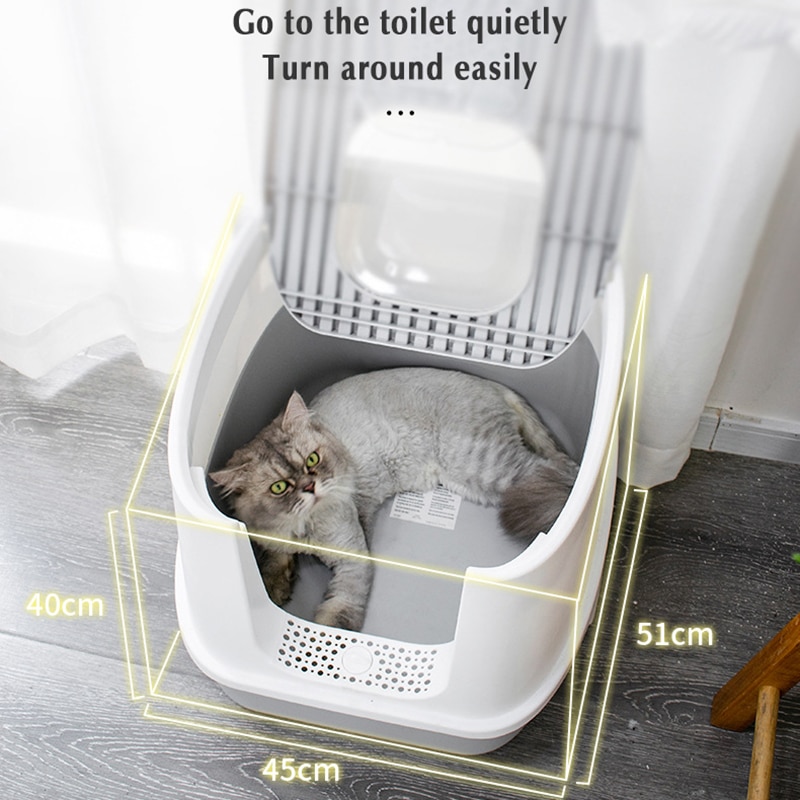 Pet Cat Litter Box Fully Enclosed Anti-Splash Deodorant Cat Toilet For Cats Two-Way with Shovel High Capacity Cat Litter Tray