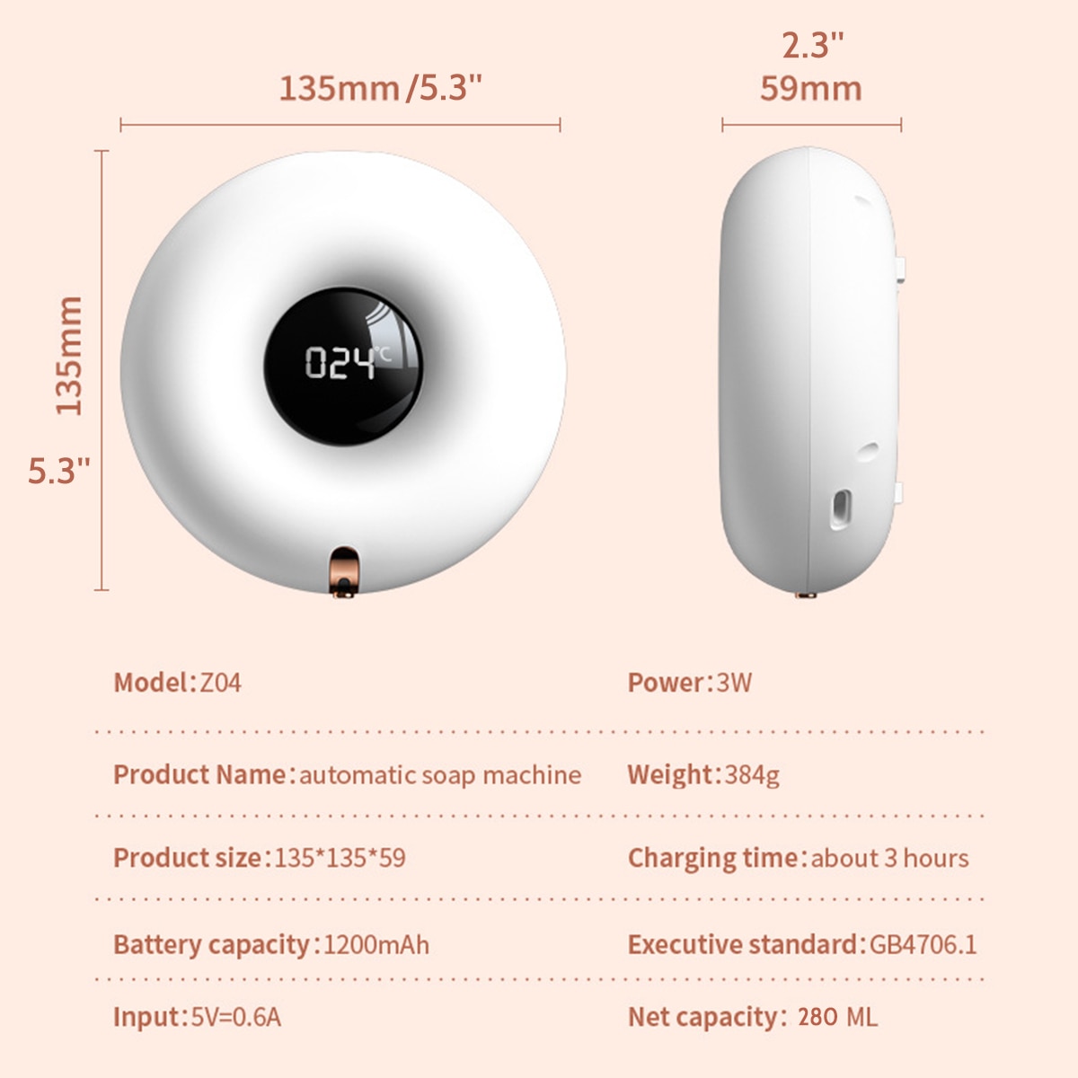 280ml Touchless Automatic Sensor Foam Soap Dispenser Hand Sanitizer Liquid Fast Foaming Wall Mounted Bathroom Accessories