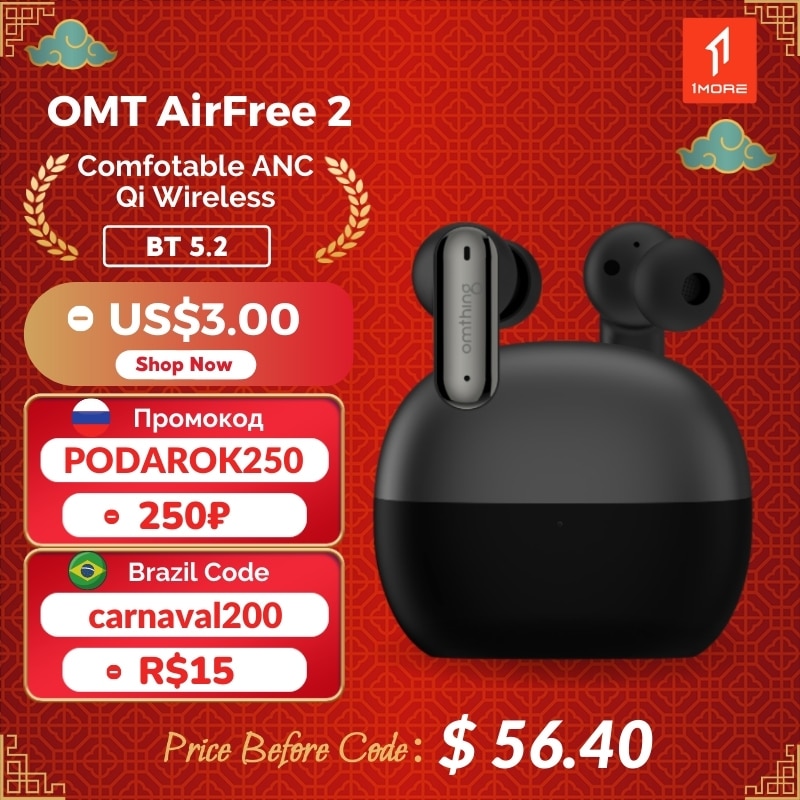 1MORE Omthing AirFree 2 ANC Noise Canceling Headphones Bluetooth 5.2 Earphones Qualcomm Aptx Tws Wireless Charging 25H Battery