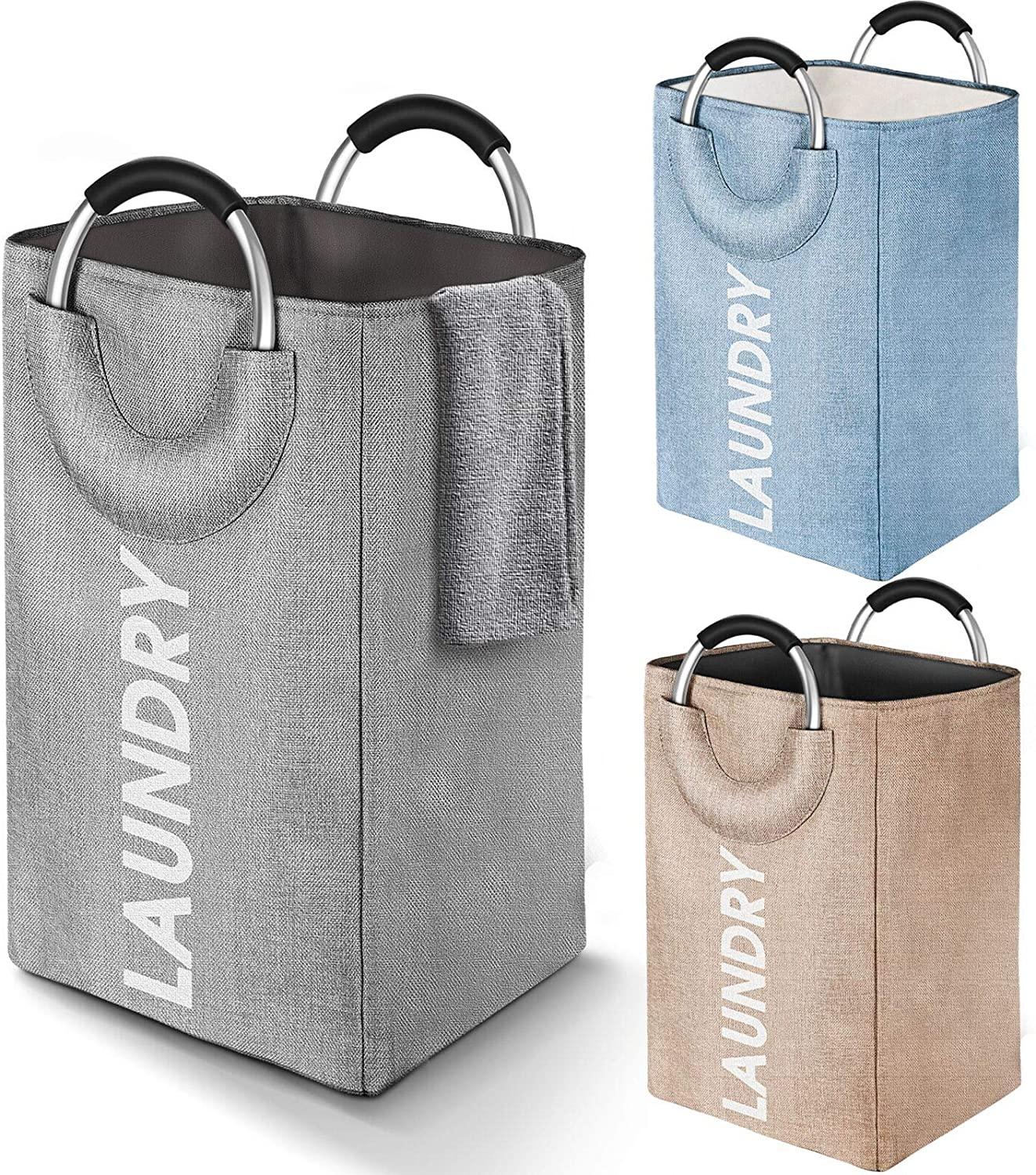 75L Large Capacity Laundry Basket Linen Storage Bag with Ring Aluminum Handle Portable Washing Bin Folding Clothes Bag Bathroom