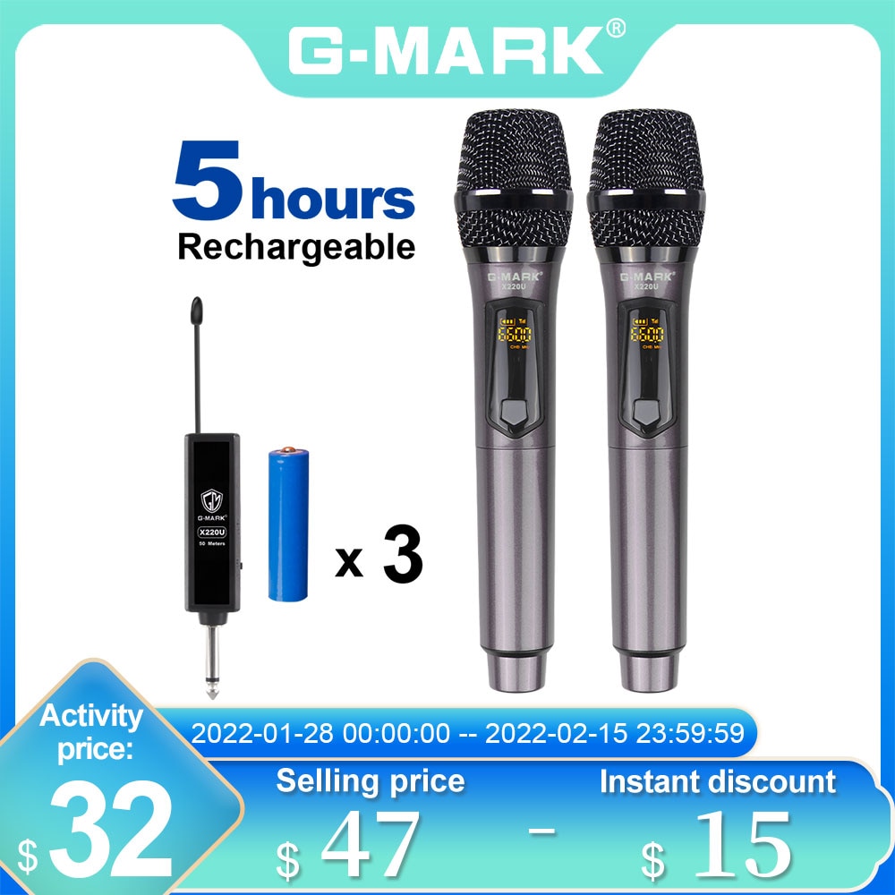Wireless Microphone G-MARK X220U UHF Recording Karaoke Mic With Rechargeable Lithium Battery Receiver Work 5 Hours For Speaker