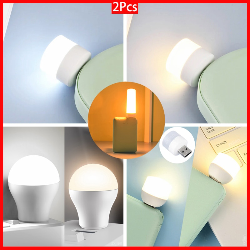 2pcs USB Light LED Usb Lamp Eye Protection Reading Light Computer Reading Lamp Mobile Power Charging Book Lamps Night Light
