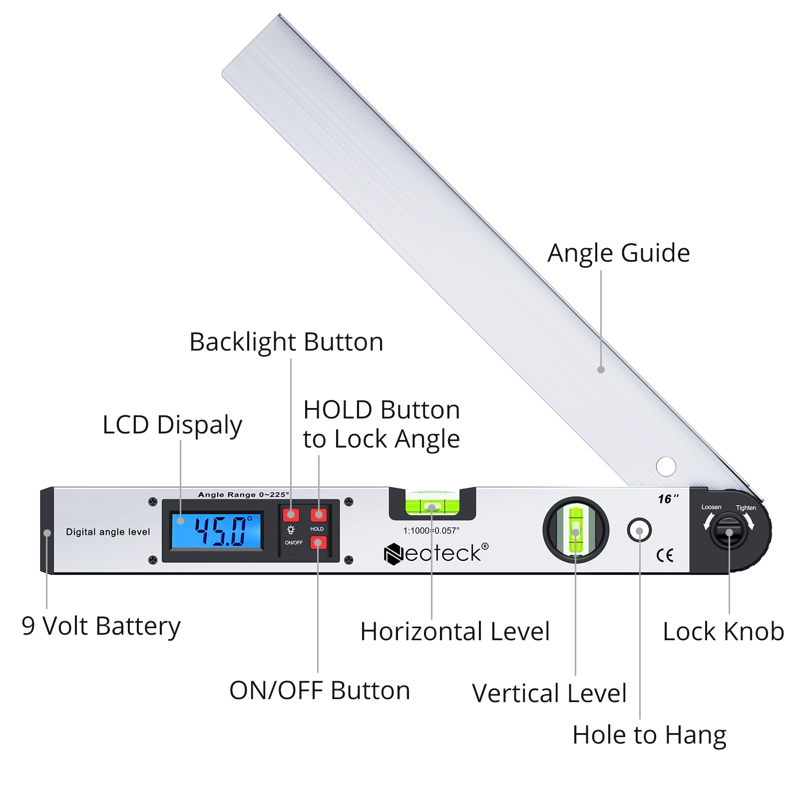 Neoteck 0~225° Digital Protractor Spirit Level Angle Finder Gauge Meter Digital Angle Finder Electronic Protractor LCD Display