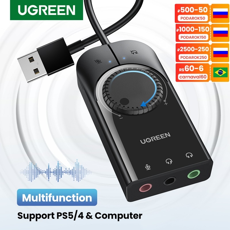 UGREEN Sound Card USB Audio Interface External 3.5mm Microphone Audio Adapter Soundcard for PC Laptop PS4 Headset USB Sound Card