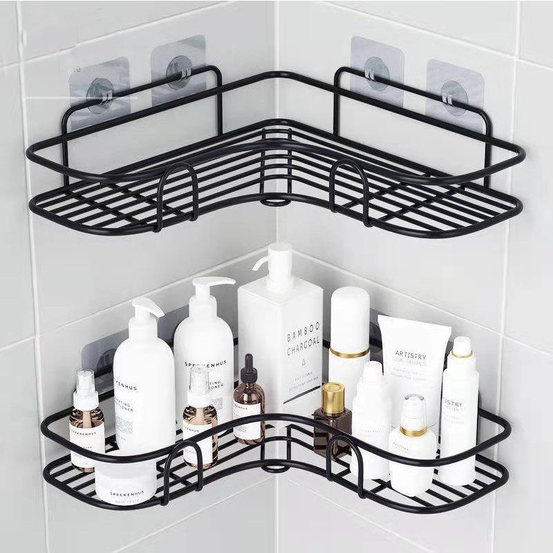 Bathroom kitchen Punch Corner Frame Shower Shelf Wrought Iron Shampoo Storage Rack Holder with Suction Cup bathroom accessories