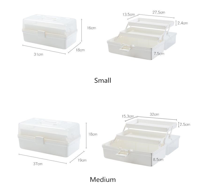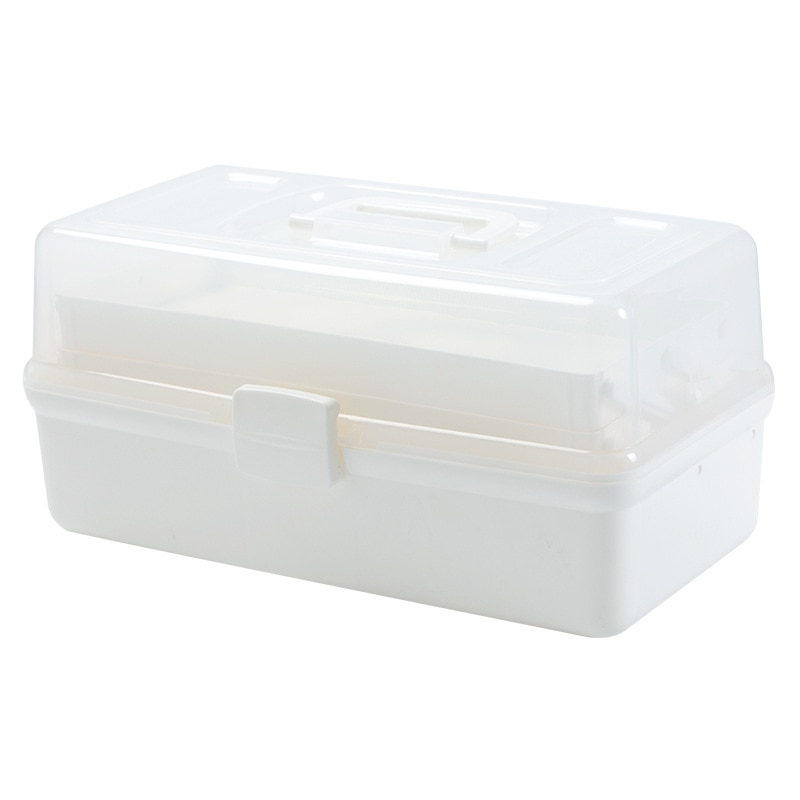 Portable Empty First Aid Box Clear 2-Tray Plastic Medication Storage Box for Home with Divider Inserts and Handle White