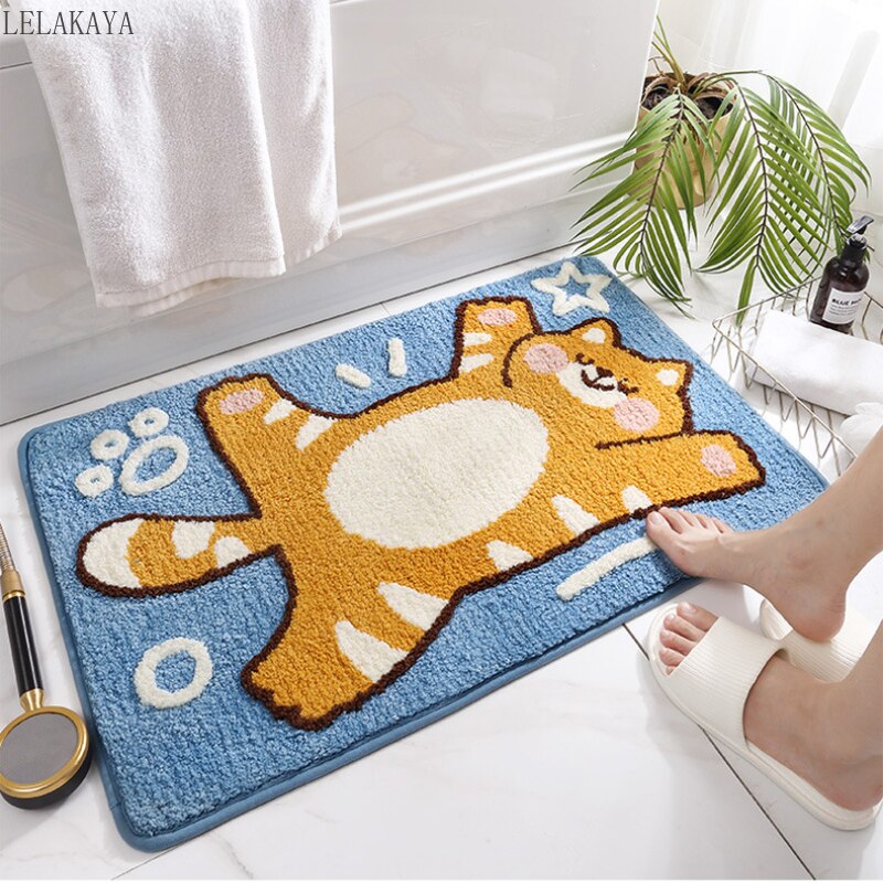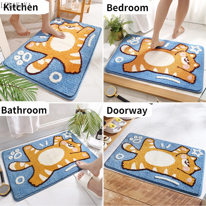 Cute Cat dog Bathroom Doorway Mat Absorbent Floor Rugs Non-slip Room Area Carpets Soft Plush Living Room Kitchen Balcony Carpet