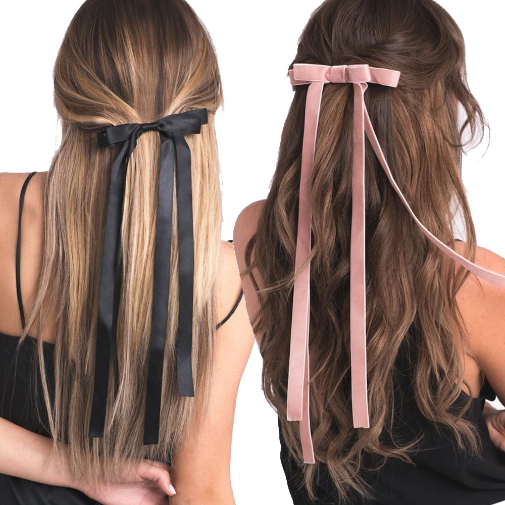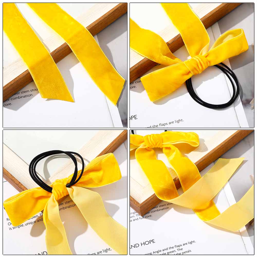 Vintage Black Velvet Bowknot Hair Band Scrunchies For Women Girls Long Elastic Hair Tie Headwear Woman Hair Accessories