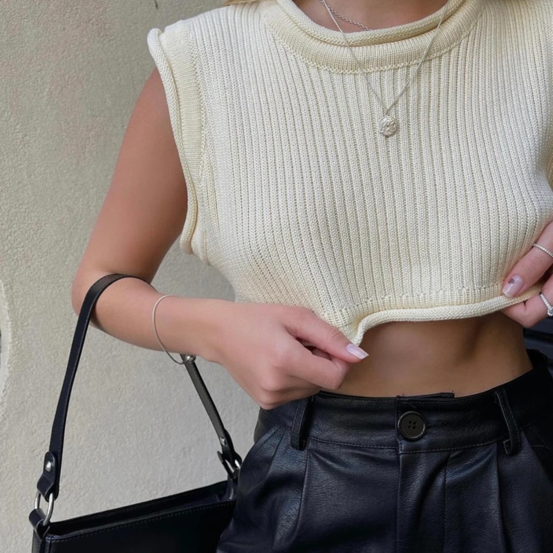 Urifens O Neck Sleeveless Knit Top 2021 Summer Y2K White Solid Crop Tops For Women Casual Loose Fashion Sexy Knitted Vest LT01U