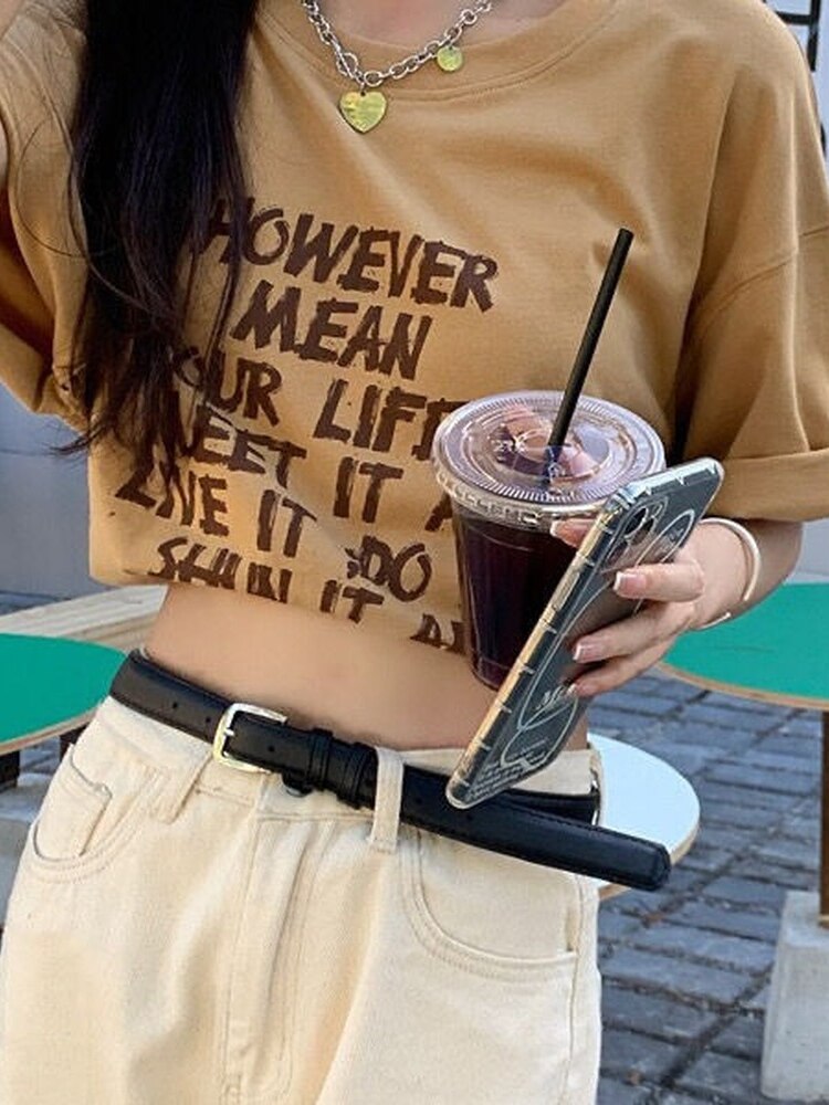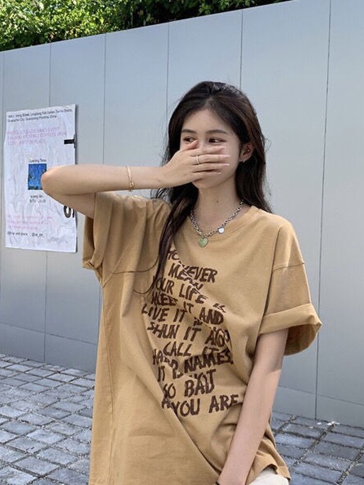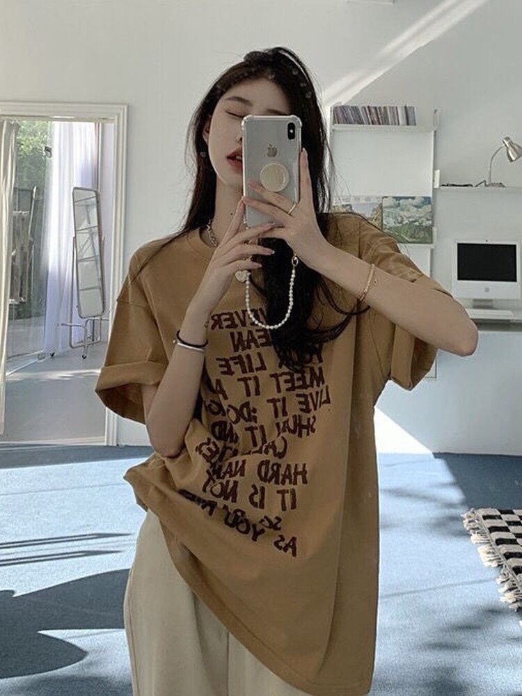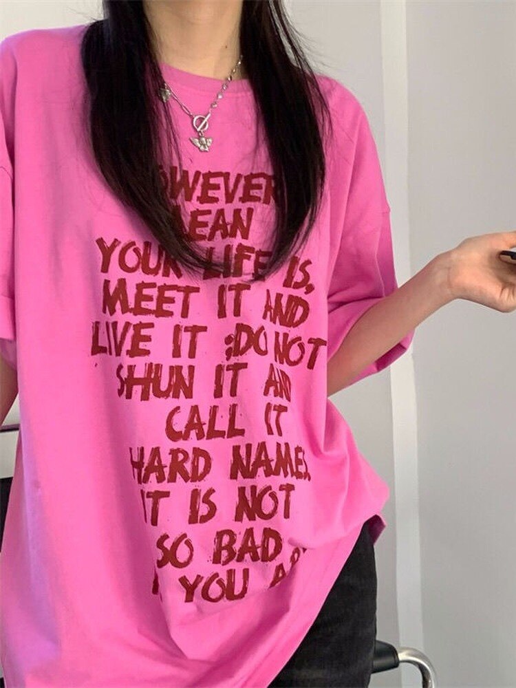 QWEEK Vintage Harajuku Letter Print T Shirts Women Korean Fashion Short Sleeve Tshirt Tops Tees 2022 Summer Kpop Clothes