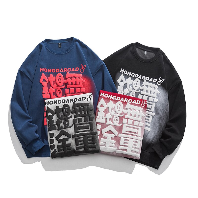 Retro Long Sleeved Sweatshirt Men Women Ins Kawaii Tide Brand Personality Character Print Loose All Match Casual Pullover Gothic
