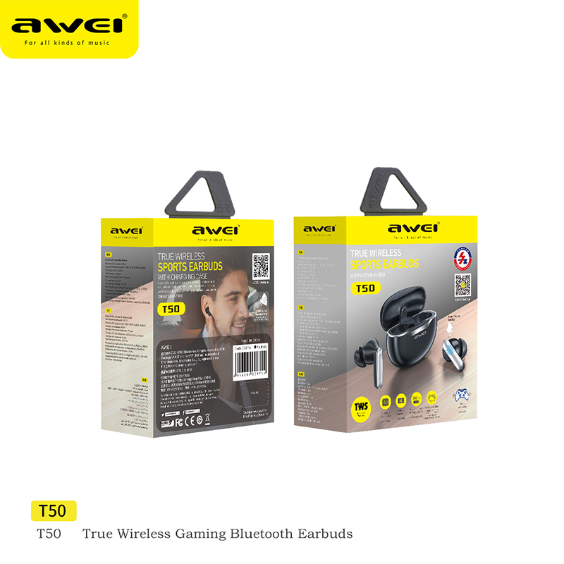 Awei T50 Wireless Headphones Bluetooth 5.3 Earbuds With Mic TWS Earphones In-Ear Stereo Sport Headset наушники беспроводные