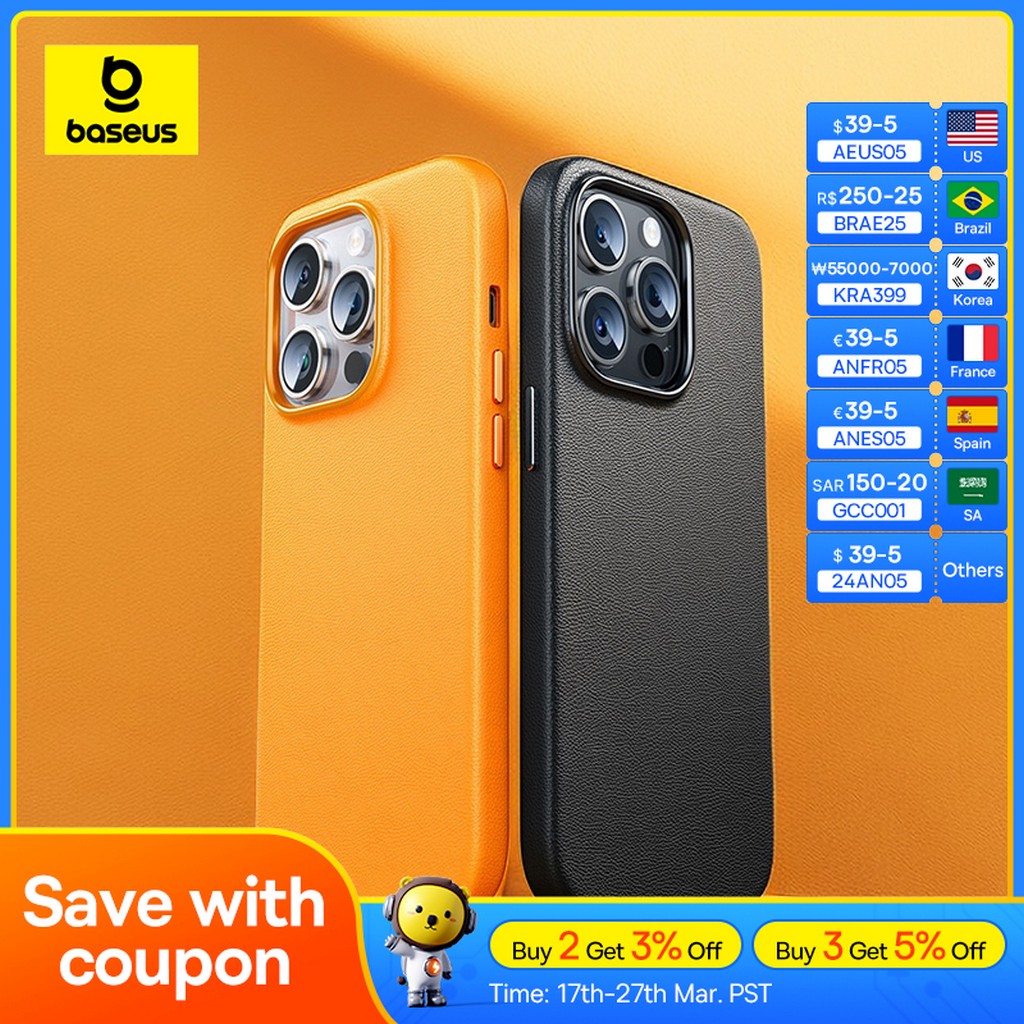 Baseus PU Leather Magnetic Case for iPhone 15 14 13 Pro Max Plus Luxury Magnet Case for Magsafe Wireless Charging Phone Case