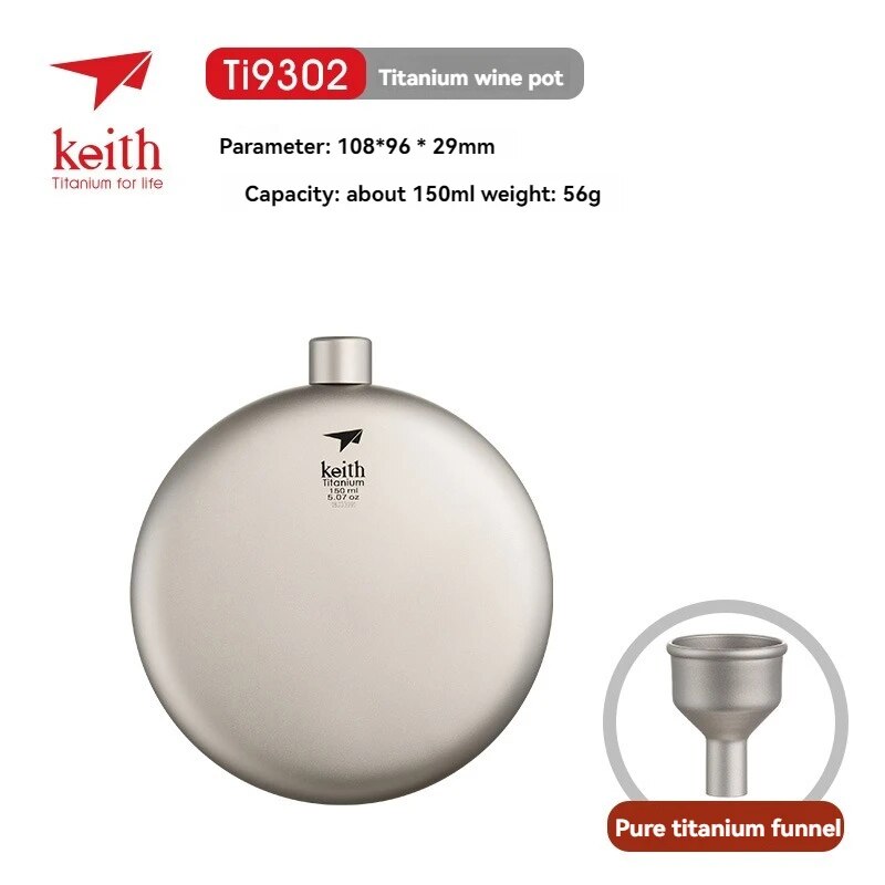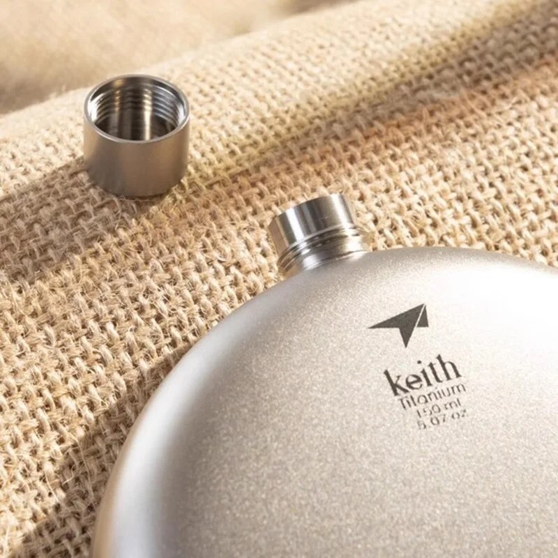 Keith Pure Titanium Flagon 150ml Portable Outdoor Travel Camping Whiskey Wine Alcohol Bottle Tableware Drinkware Hip Flask