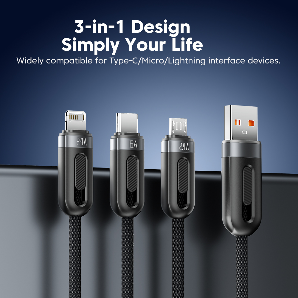 Toocki 3 in 1 USB Cable to iP Type C Micro Cable 66W Digital Display Fast Charging USB C Charger Wire for iPhone14 13 12 Samsung