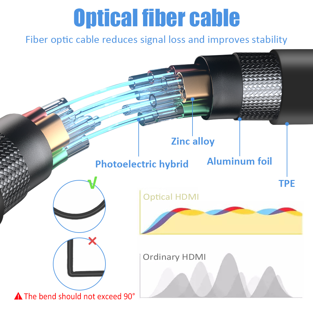 8K 60Hz HDMI 2.1 Fiber Optical Cable 4K 120Hz Ultra High Speed 48Gbps HDR eARC 3D HDCP 10M 15M 20M 30M 50M For TV Projector