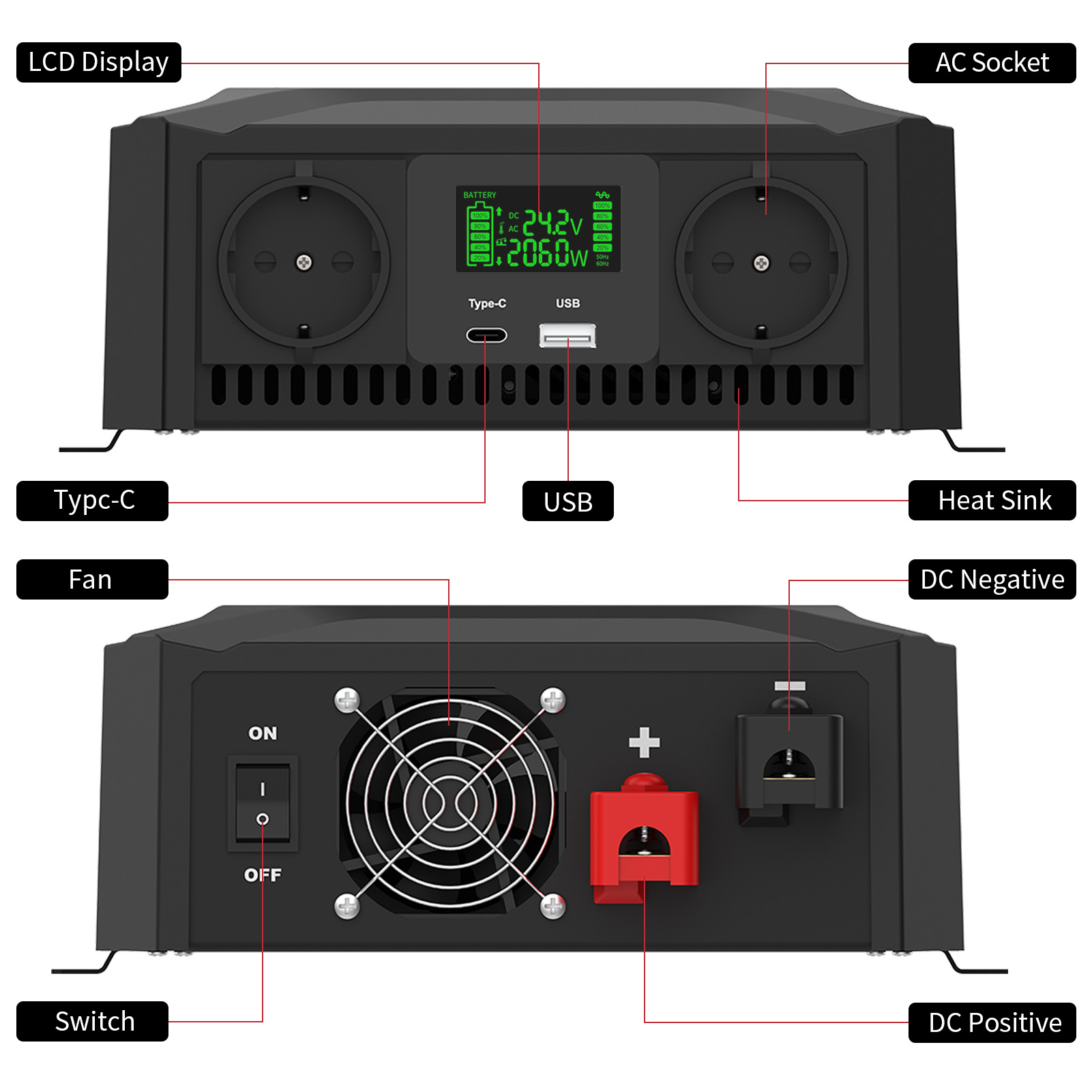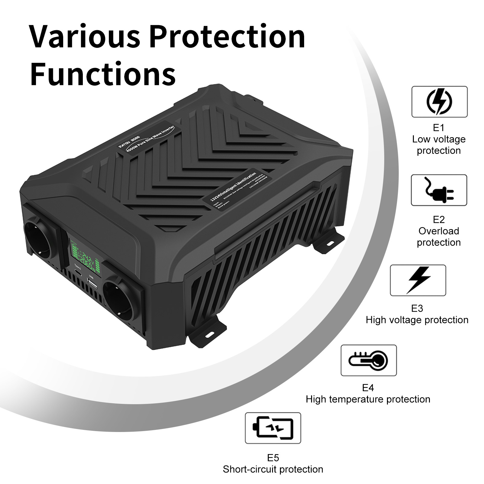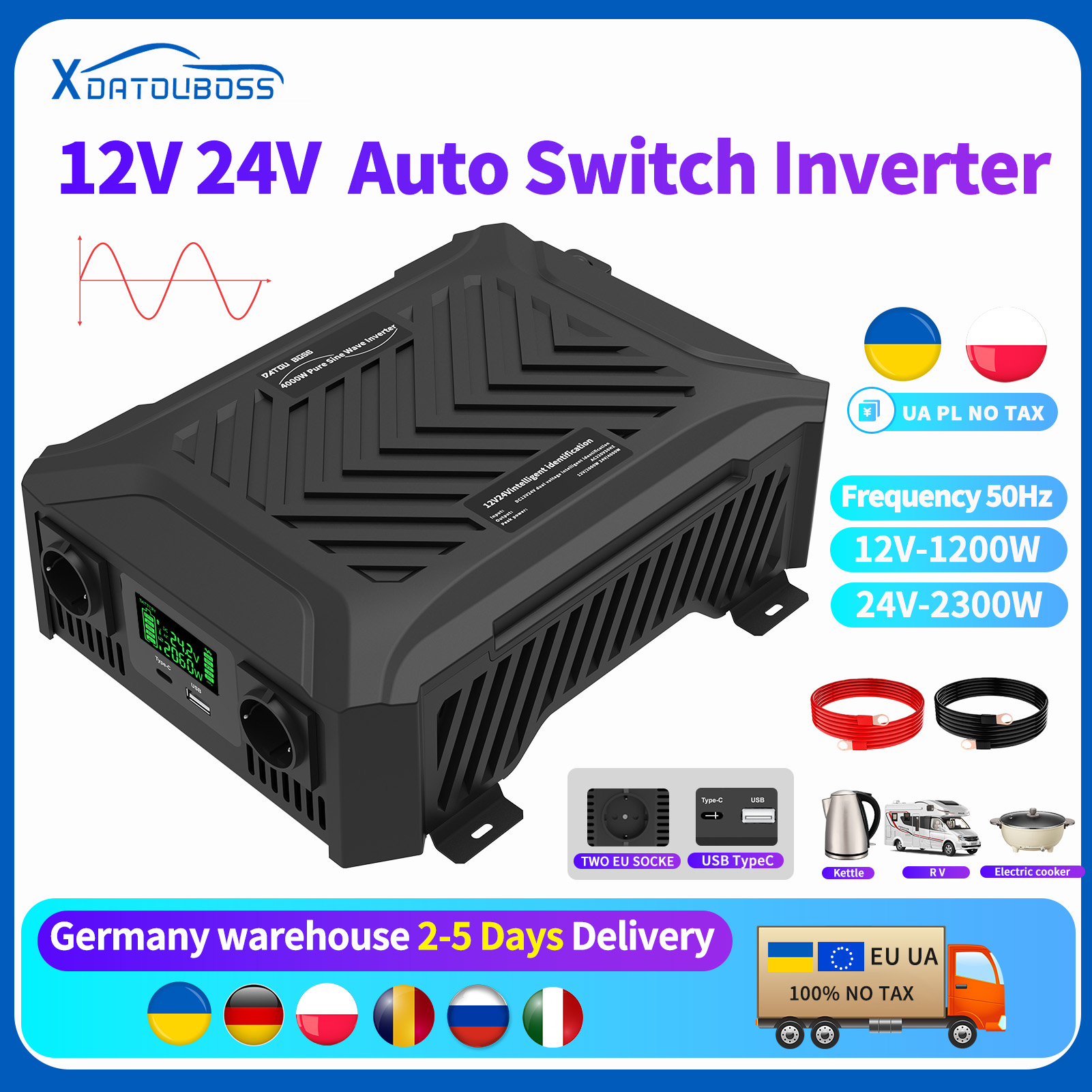 DATOU BOSS Pure Sine Wave Inverter 12v 24v 1200w 2300w Two Voltages Support dc ac Inverter 12v to 220v EU Peak Power 4000W