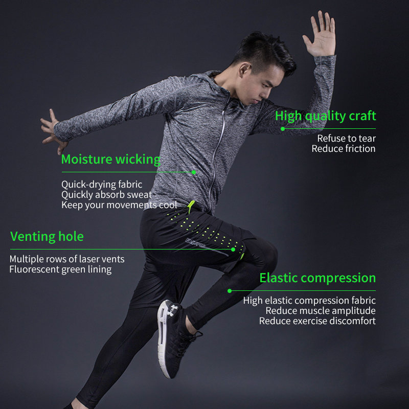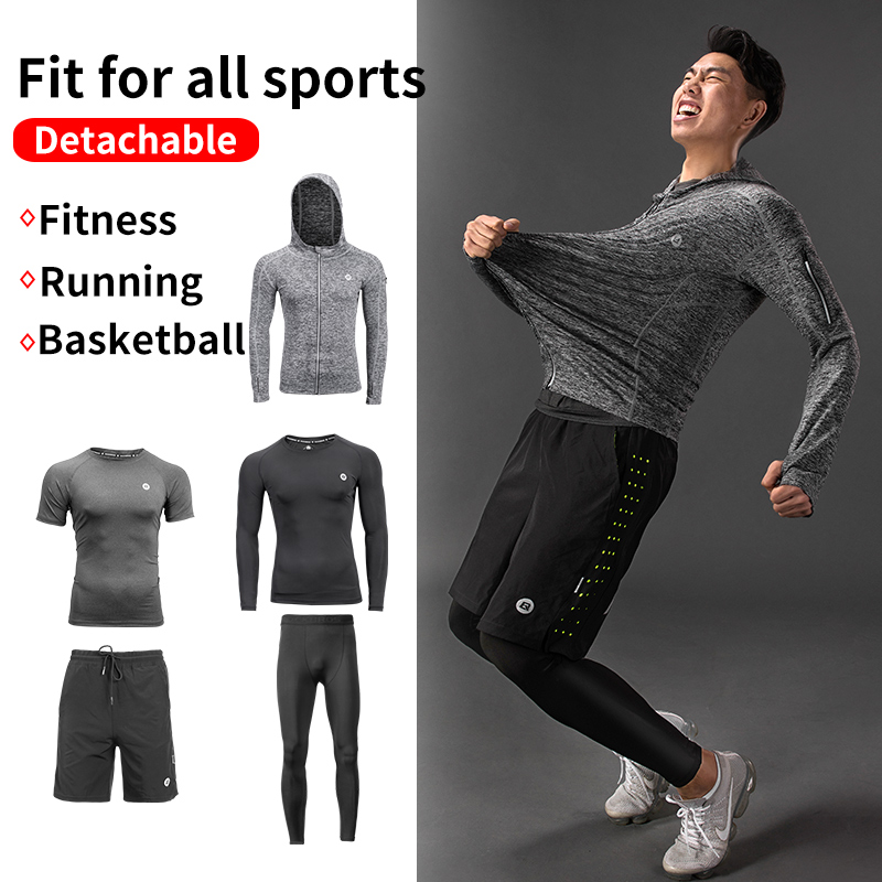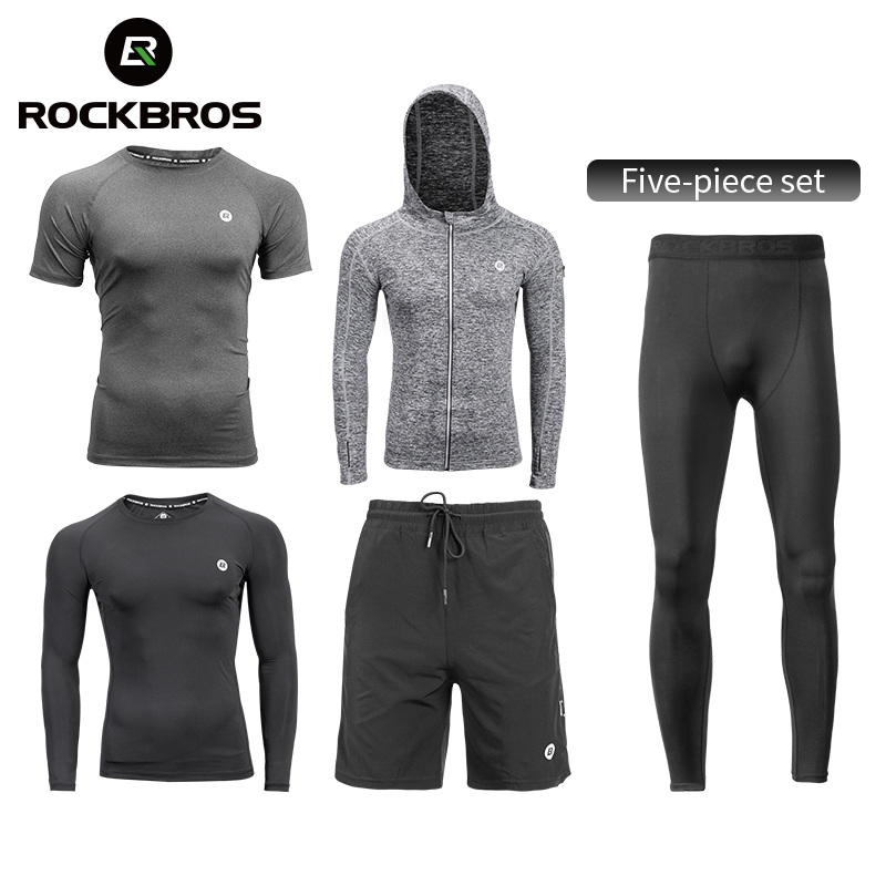 ROCKBROS Men's Tracksuit Gym Fitness Running 5 Pcs/Set Quick Dry Sweat-absorb Compression Sport Suit Clothes Jogging Sport Wear