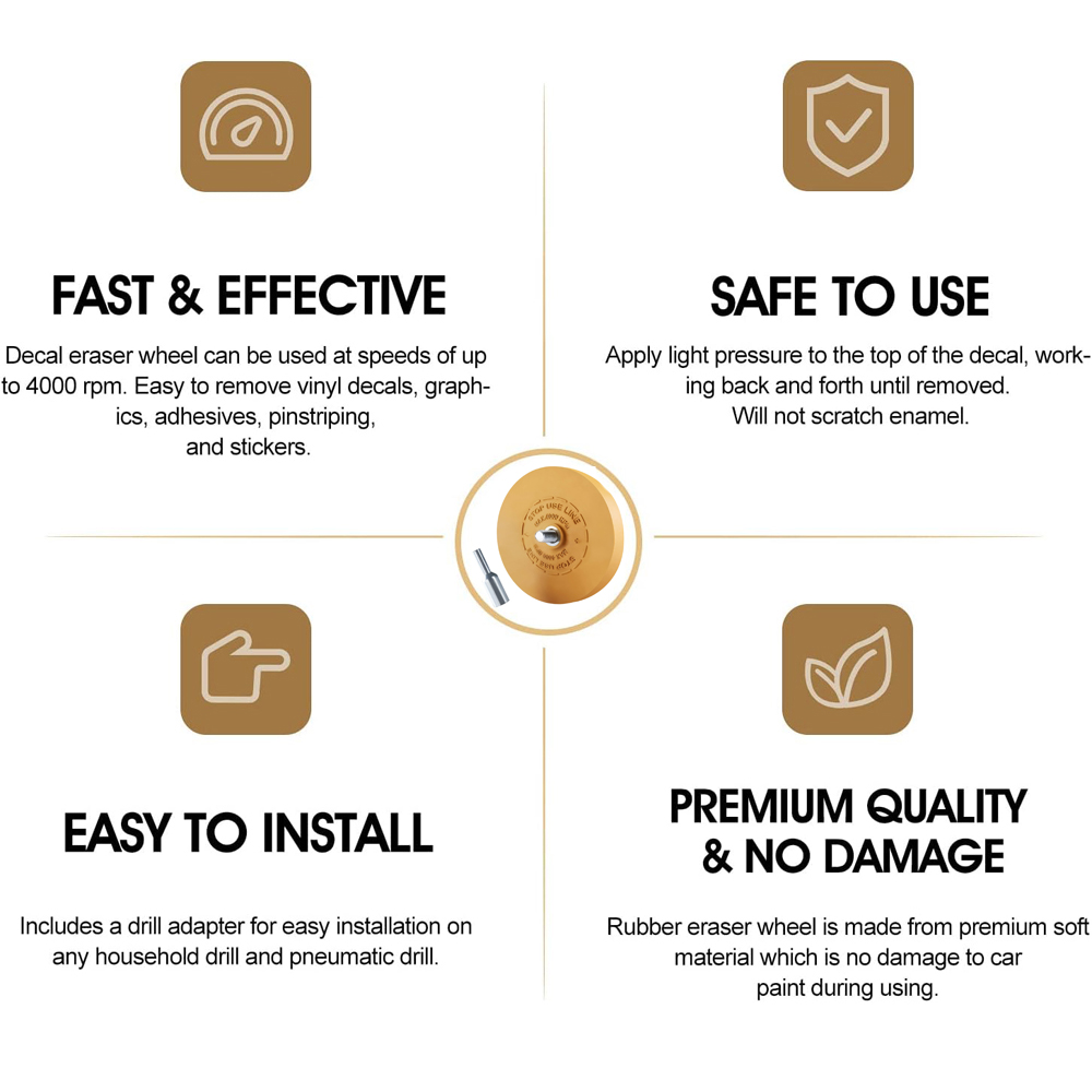 Decal Remover Eraser Wheel Removes Pinstripes Vinyl Tapes Sticker Adhesive Remover Wheel for Drill Rubber Eraser Remover Tool