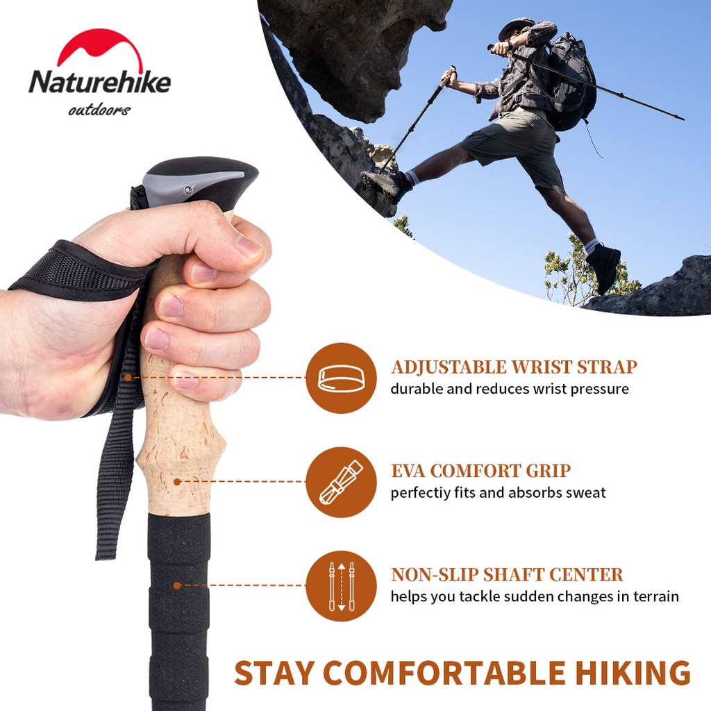 Naturehike Trekking Poles 2pcs Carbon Fiber Collapsible Telescopic Sticks Lightweight Walking Hiking Stick Climbing Stick