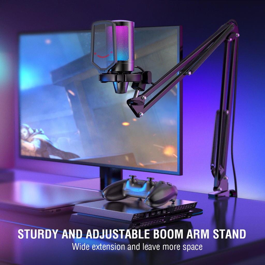 FIFINE USB Gaming Microphone Kit for PC,PS4/5 Condenser Cardioid Mic Set with Mute Button/RGB /Arm Stand,for Streaming Video-A6T