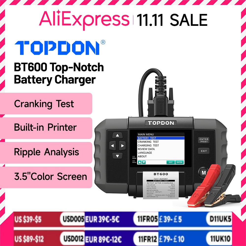 TOPDON BT600 12V 24V Car Battery Tester Lead Acid Vehicle Automotive 3.5 Inch screen Car Truck Charging Cranking Analyzer