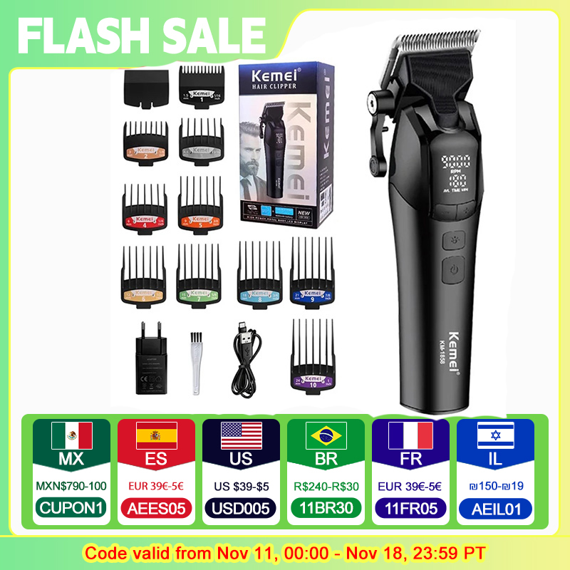 Kemei Professional Barber Hair Clippers Rechargeable Cordless Electric Hair Trimmer Hair Cutting Machine Men Hair Cutter 9000RPM