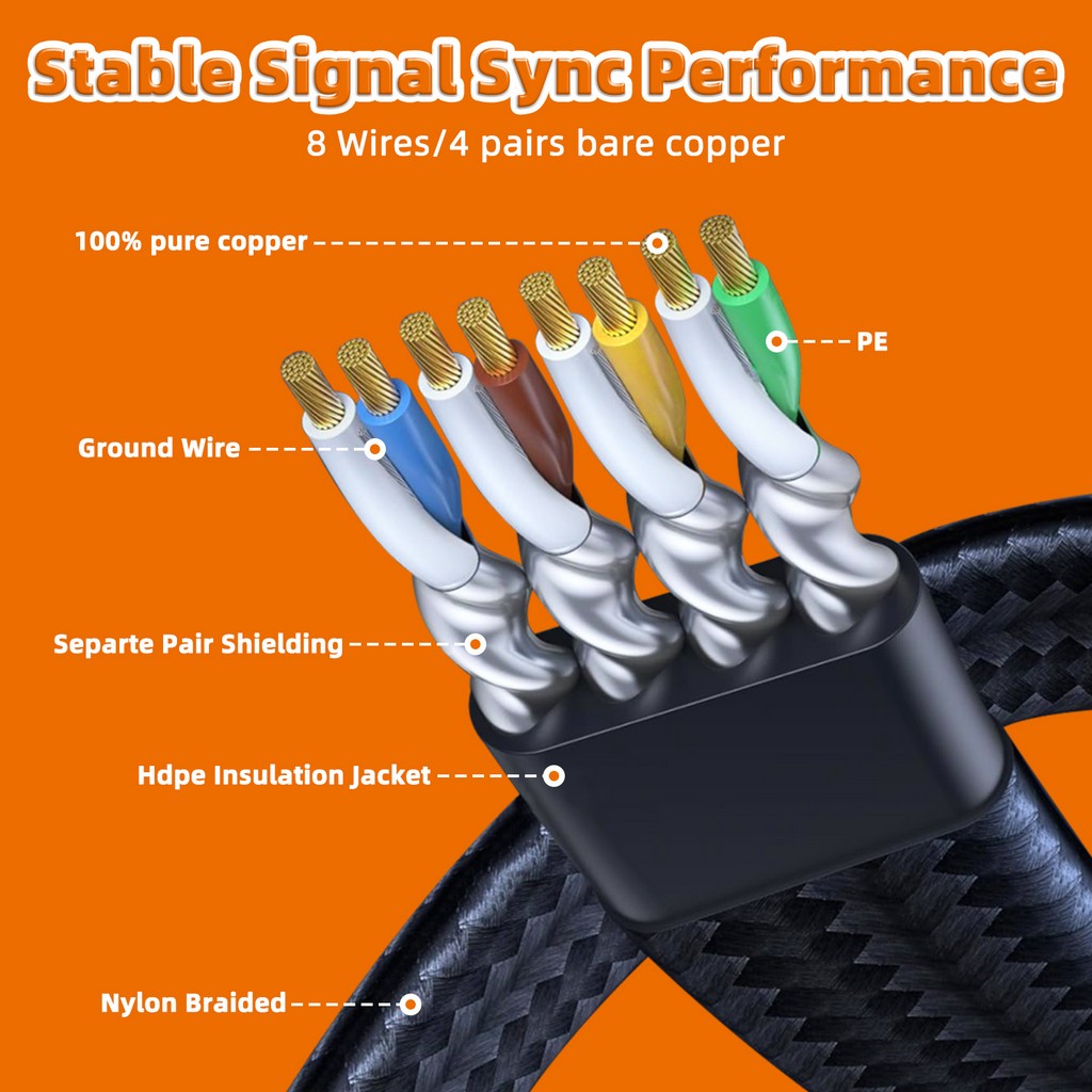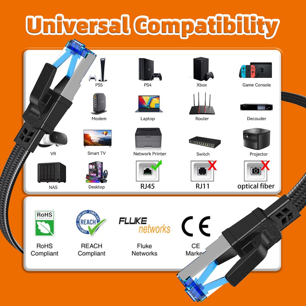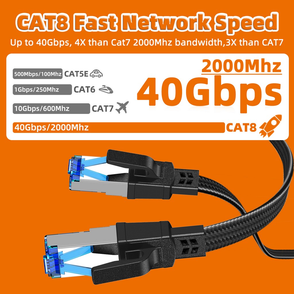 Nylon Braided Cat8 Ethernet Cable 40Gbps High Speed Lan Patch Cord RJ45 Network Cable 5m8m10m for Laptop Modem Wifi Router Cat 8
