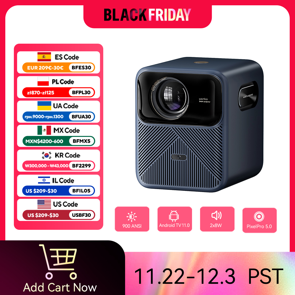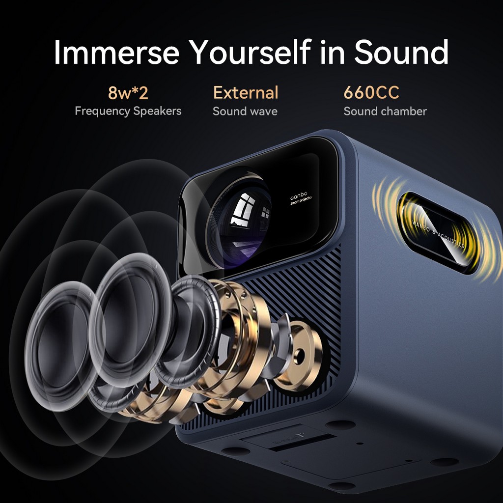 Wanbo Mozart 1 Pro Projector Android TV 11.0 Google Assistant Netflix 1080P DRM L1 Suppot 4K Beam Proyector 900Ansi Dual Wifi