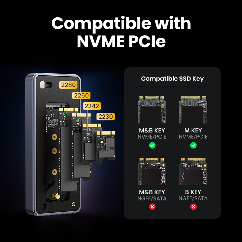 UGREEN 40Gbps NVMe SSD Case SSD Enclosure M.2 to USB4.0 Adapter for M.2 NVME PCIE Built-in Cooling Vest Aluminum Case