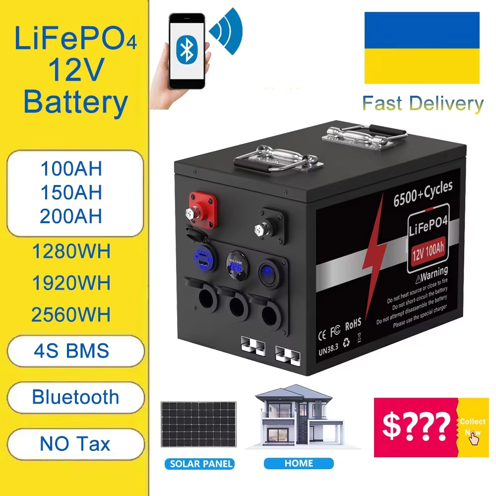 LiFePO4 12V 100Ah 150Ah 200Ah Bluetooth BMS 6500+ Cycles LiFePO4 Battery 12.8V Pack Lithium Battery QC3.0