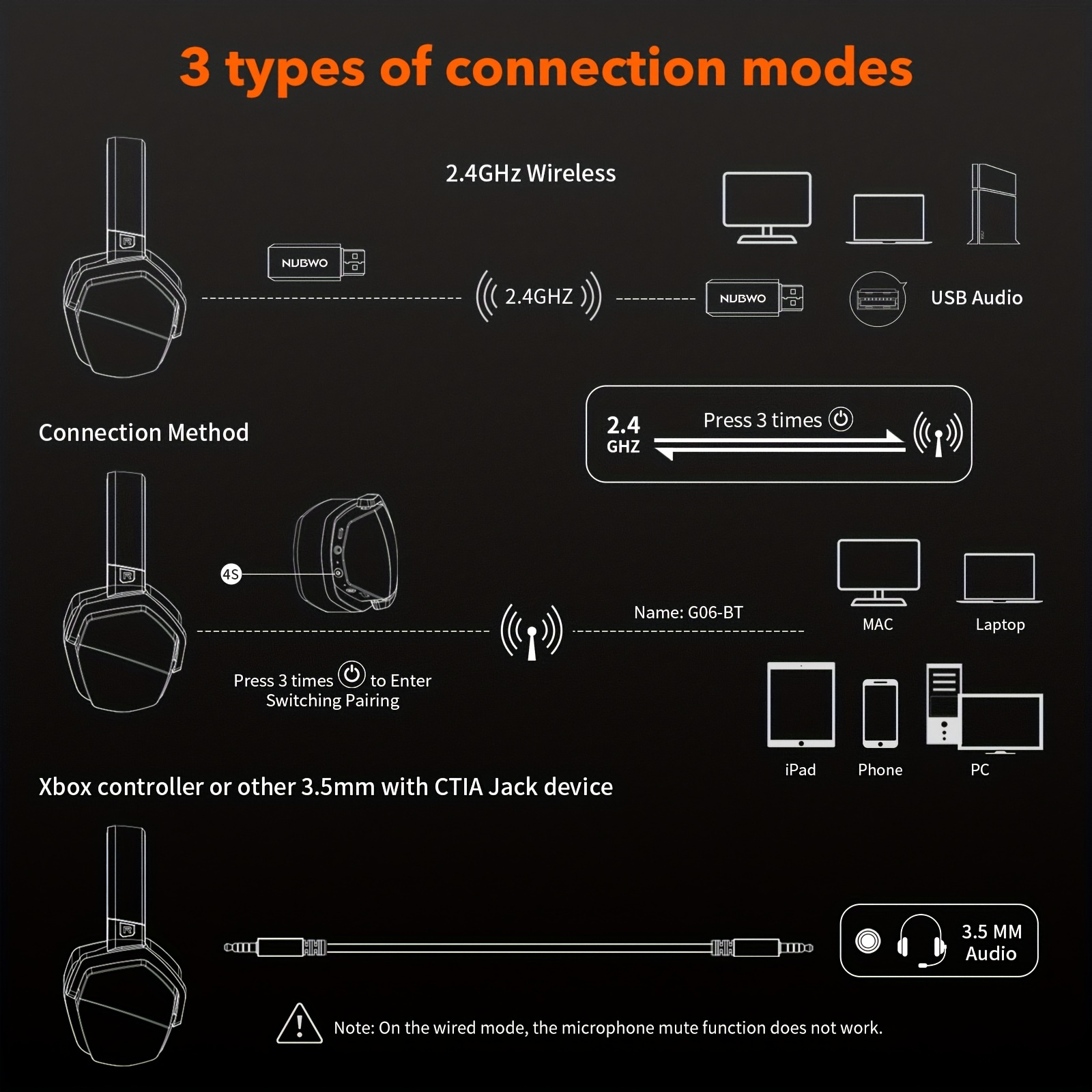 NUBWO G06 Gaming Headset for PS5, PS4, XBOX,PC, Mac, 2.4GHz Ultra-Low Latency Noise Cancelling Bluetooth Headphones With Mic