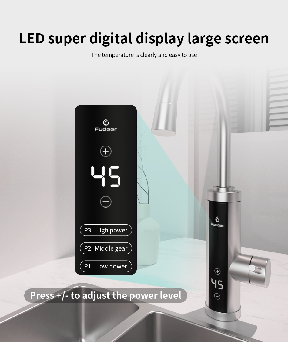 Fudeer Electric Water Heater Kitchen faucet Instant Hot Water Faucet Heater 3400W 220V Heating Faucet Instantaneous Heaters