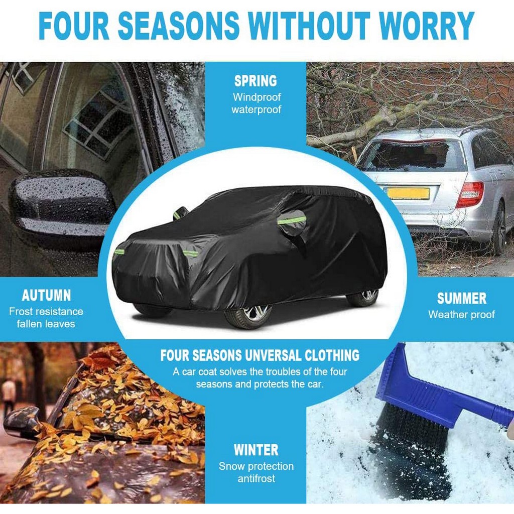 Universal Waterproof Car Cover All Weather Rain Snowproof Protection Windproof Outdoor Full Car Cover For SUV Length Up to 200''