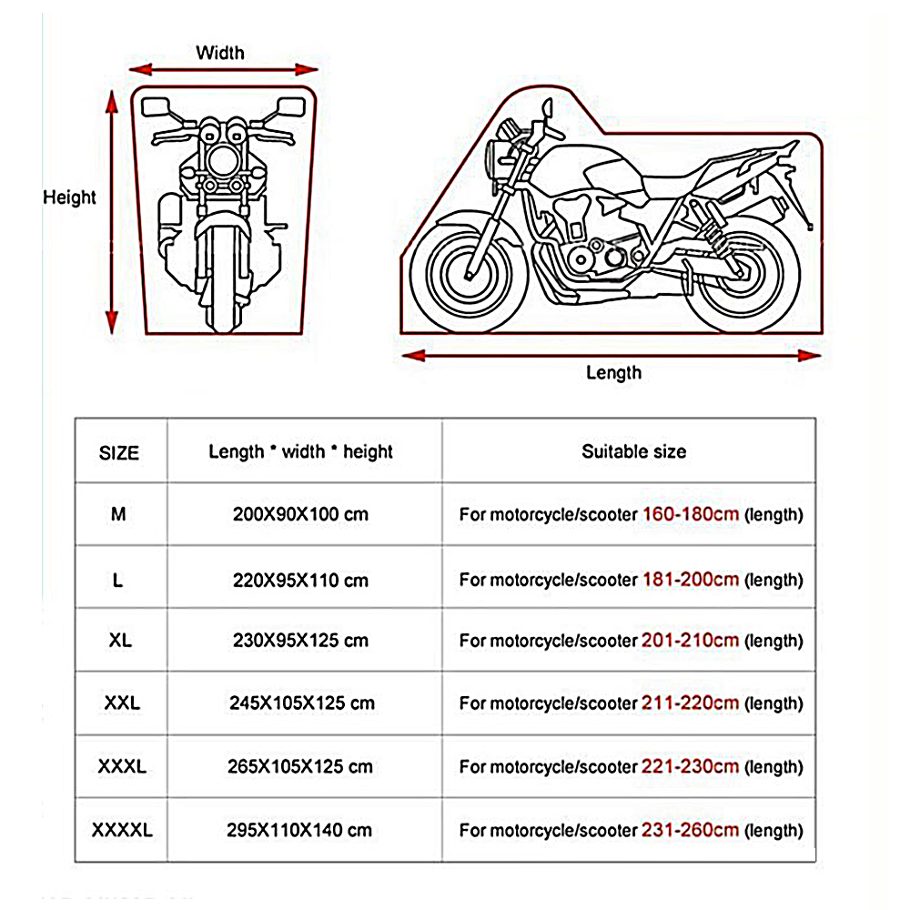 All Season Black Waterproof Sun Motorcycle Cover, Motorbike Cover Universal Weather Sun Outdoor Protection with Storage Bag
