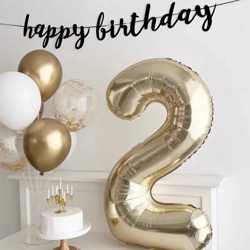 40Inch Champagne Gold Number Balloon Adult Baby Boy Girl Happy Birthday Party Decorations 1st Kids Large 1-9 Foil Helium Globos