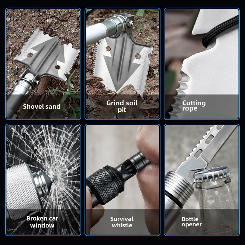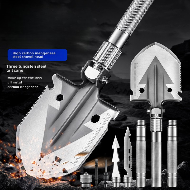 Foldable multifunctional outdoor portable engineering shovel, convenient camping equipment