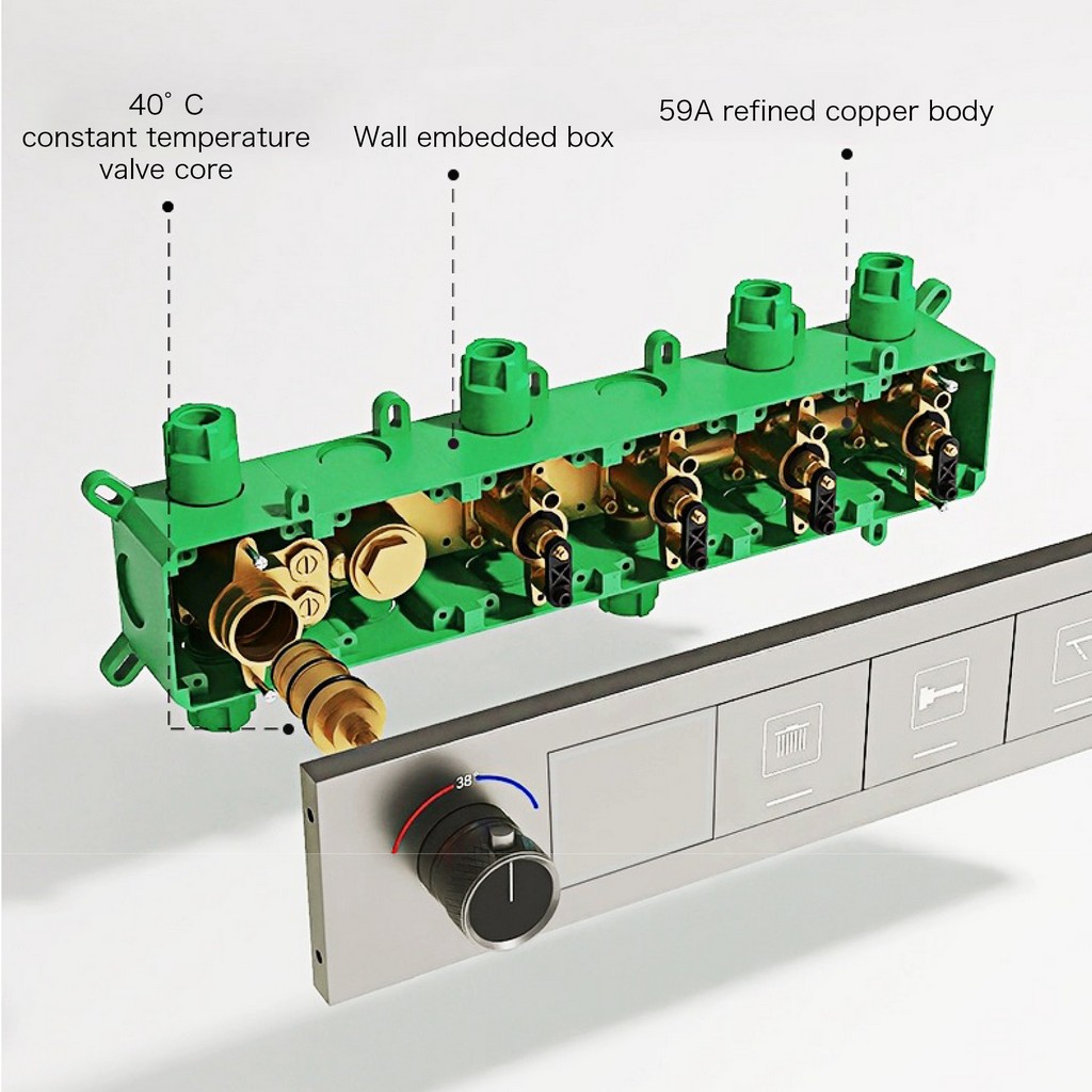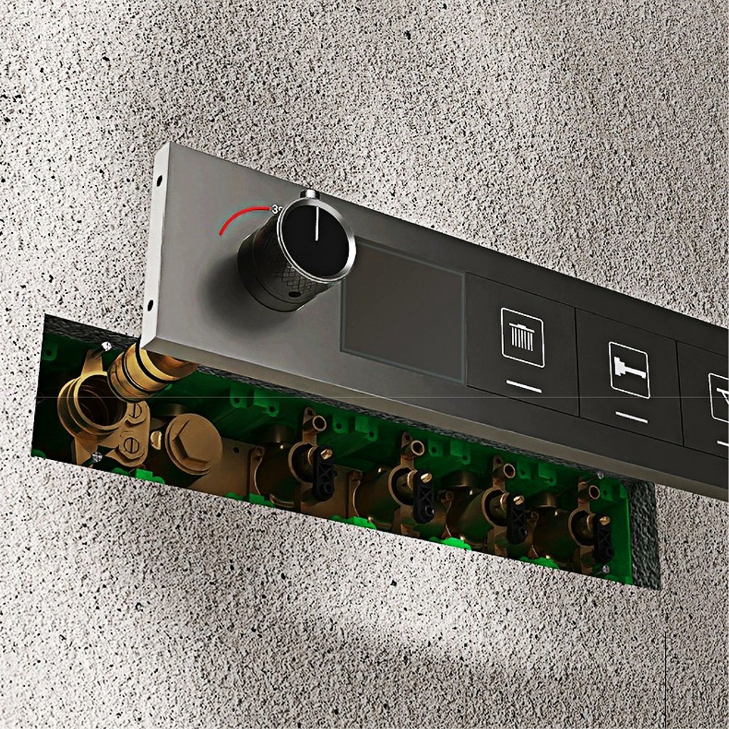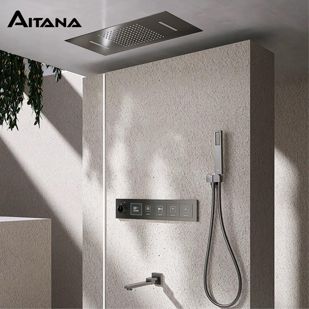 Luxury brass shower system with ceiling design, cold and hot LED digital display, constant temperature bathroom, hidden faucet