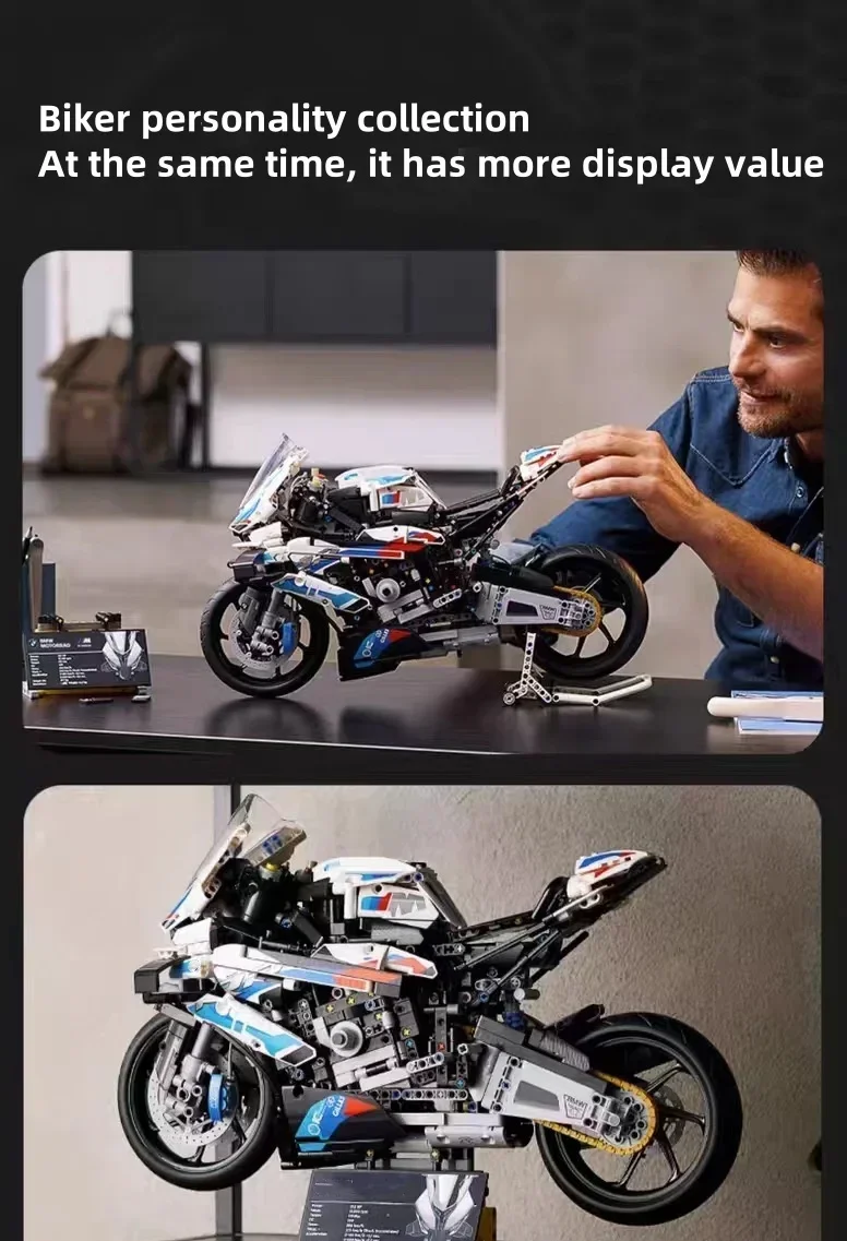 New Motorcycle Building Bocks Simulation Motorcycle Model Decoration Assembly Model Difficult Toy Boy Educational Creature Gifts