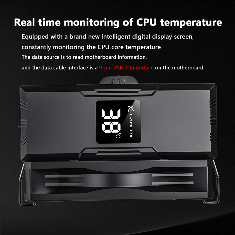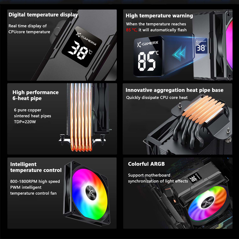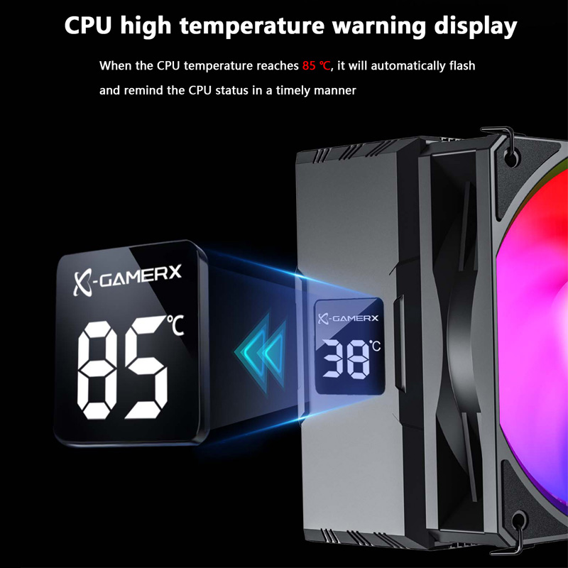 Power Train X-Gamerx Z-6000 ARGB CPU Cooler with Digital Temperature Display Radiator 6 Heat pipes For LGA1700/1200 115X AM4 AM5